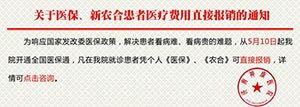 凡是参与城镇医保、新农合的患者来我院就诊,可凭本人医保卡或新农村合作医疗手册,及本人身份证享受济南神康医院提供的以下报销政策: